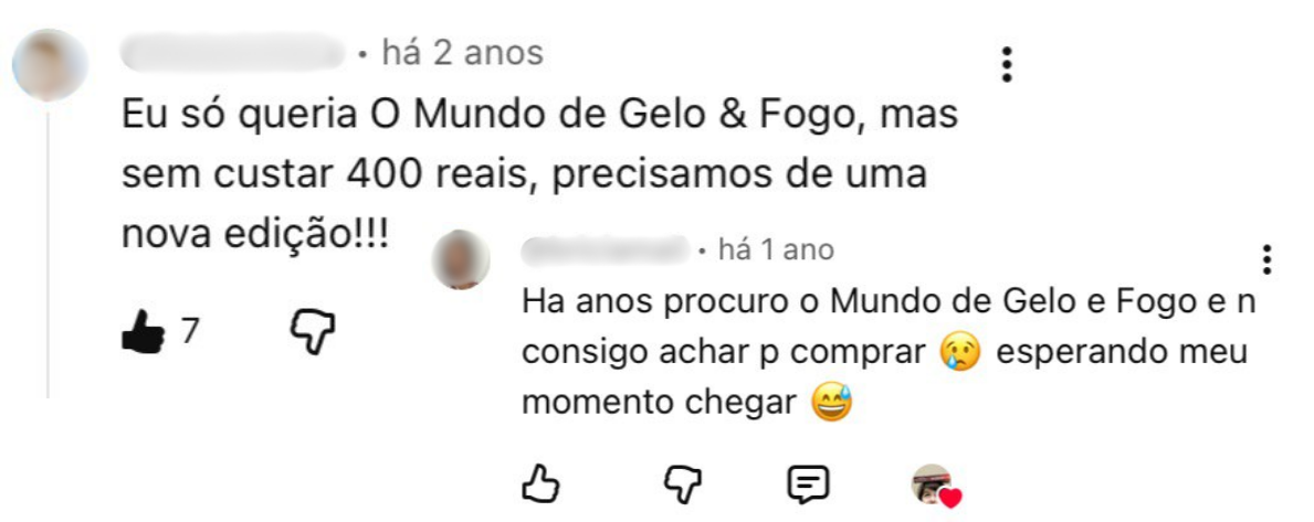 O problema é que o livro estava esgotado há anos no Brasil. Os únicos volumes disponíveis (de quando outra editora publicava o GRRM por aqui) chegavam a ser vendidos por 400 reais em sebos ou marketplaces. Não era nem viável recomendar a leitura aos inscritos do canal. Mas agora O Mundo de Gelo e Fogo está de volta pela Editora Suma, com caprichadíssima nova tradução por Jana Bianchi e Diogo Ramos (e preparação do Felipe Bini, do Gelo e Fogo - principal site de fãs brasileiros das Crônicas).