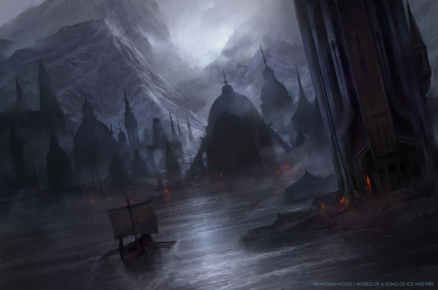 Talvez Asshai seja o local misterioso de Essos sobre o qual temos mais informações. Afinal, é um dos mais mencionados n'As Crônicas de Gelo e Fogo. Dizem que os ovos da Daenerys vêm de lá, assim como a Melisandre. Mirri Maz Duur afirma ter estudado ali e Euron Greyjoy se gaba de ter navegado até a cidade. Asshai por si só já é um lugar fascinante - uma terra de feiticeiros, alquimistas e umbromantes, de onde se originam profecias e até, de acordo com alguns textos, os dragões. Por ela passa um rio tóxico cujas águas brilham à noite. Todo mundo esconde o rosto, não há crianças, e os alimentos têm de ser trazidos de fora, já que animais morrem em pouco tempo ali. Não parece muito convidativo, né? O GRRM consegue vender Asshai como um dos lugares mais barra-pesada do Mundo Conhecido. Mas e se eu te contar que bem ao lado de Asshai tem uma cidade pior ainda? Stygai fica a nordeste dali, e sua fama é de ser uma cidade cadavérica da qual até umbromantes têm medo. Dizem que lá vivem demônios e dragões retorcidos e que quase não há incidência de luz solar, por isso o local também é conhecido como Cidade da Noite.