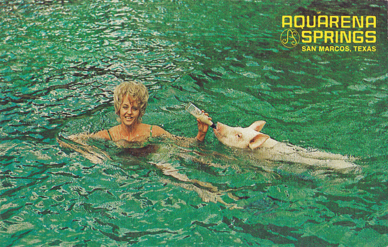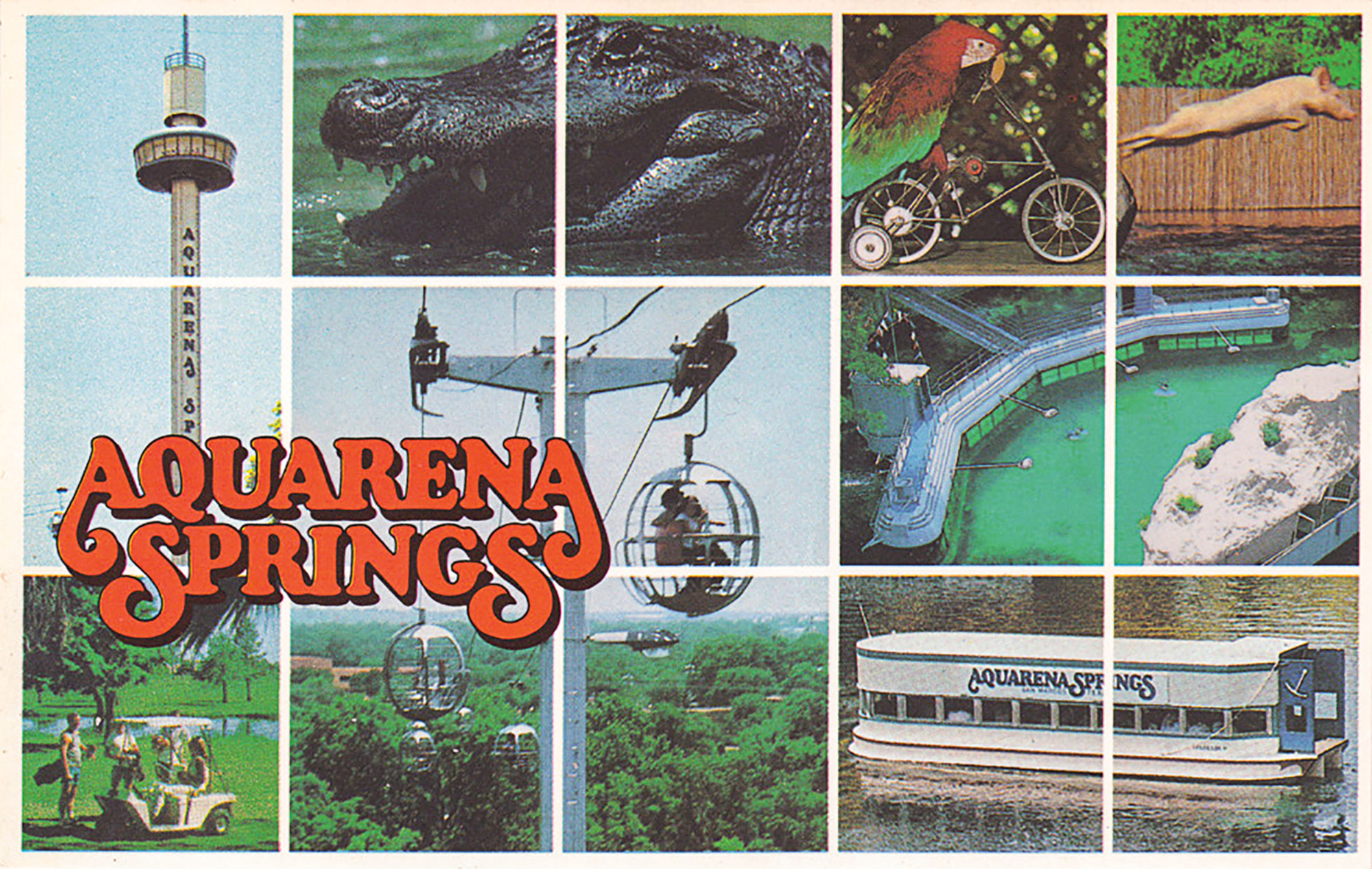 - As outras imagens do Aquarena Springs vieram do Texas Highways e da versão arquivada da matéria da Collectors Weekly.